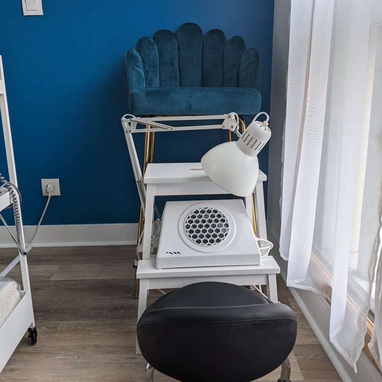 Notre pièce dédiée au soin des ongles est conçue pour vous offrir une atmosphère de calme, d'intimité et de confiance absolue.